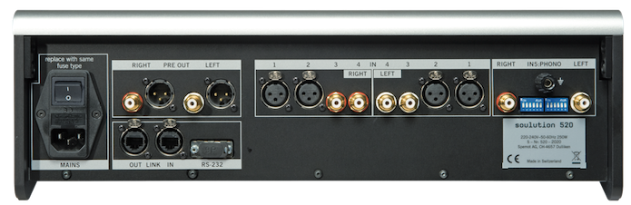 L’entreprise suisse allemande Soulution appartient à deux mordus du très haut de gamme. Egalement propriétaires d’une revue de haute-fidélité, nos deux compères par ailleurs acteurs du domaine industriel connaissent donc bien leur affaire ! Au départ, leur idée derrière la production de leur première série 700 fut de développer une gamme d’électronique sans concessions. Apporter une solution d’une transparence audiophile d’exception, caractérisée par une rapidité capable d’écarter toute notion de compression dynamique. Avec cette nouvelle ligne d’électroniques 500, le constructeur décline son savoir-faire de manière plus accessible en reprenant les fondamentaux de sa ligne maîtresse. Nous allons voir que ces éléments d’amplification, également à l’esprit purement high-end, adoptent un design très proche de la série 700 en termes d’esthétique, mais pas seulement…La ligne générale de ces blocs reprend donc la philosophie à la fois épurée et à l’épreuve du temps de la série 700. Massif, inspirant à la fois neutralité et sobriété, leur châssis en aluminium mat intègre au plus discret commandes et affichages. Examinons donc de plus près leur composition.