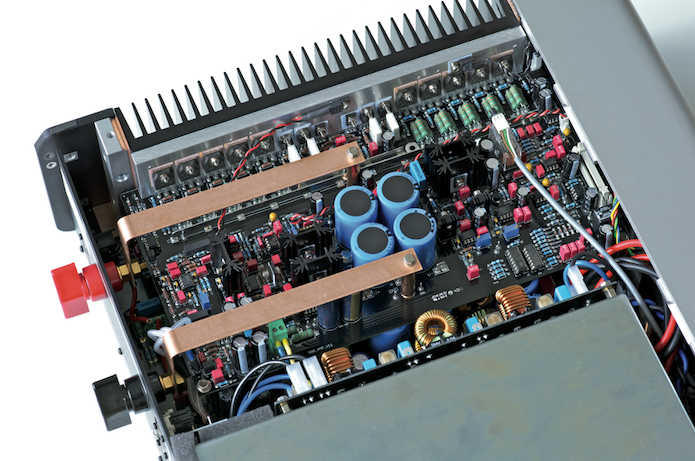 Composants : Le préamplificateur 520 met en œuvre un mécanisme élaboré de tracking du volume. Son architecture symétrique et bufferisée maximise de plus le contrôle et la gestion du gain, minimisant tout bruit d’alimentation. L’amplificateur 501 propose, quant à lui, des rails de conduction en cuivre présents de bout en bout pour maximiser la qualité de la transmission du signal vers les enceintes. Pas moins de 6 alimentations desservent chaque section critique du 501, pour une puissance en sortie de l’ordre de 1 200 VA. Au final, cette alimentation fortement filtrée et régulée délivre un courant d’une pureté quasi idéale.